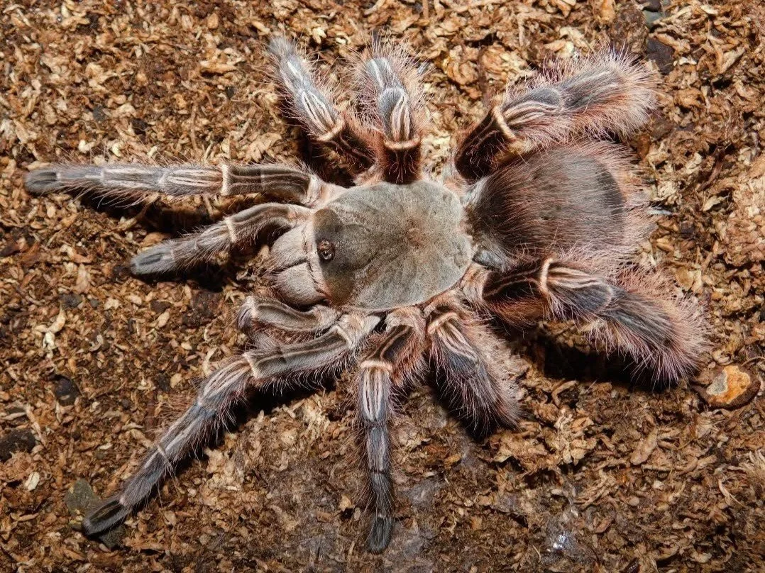 Magnacrus taynguyenensis, is a striking fossorial tarantula with a robust build and bold patterning. Native to Vietnam’s highlands, it’s fast and defensive-ideal for experienced Old World tarantula keepers.
